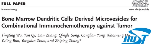 该团队在国际权威期刊《Advanced Functional Materials》在线发表,题为《树突状细胞来源的微泡用于肿瘤的免疫化疗研究》(Bone Marrow Dendritic Cells Derived Microvesicles for Combinational Immunochemotherapy against Tumor)。该论文第一作者为2015级博士生吴婷婷同学,张志平教授为通讯作者。
